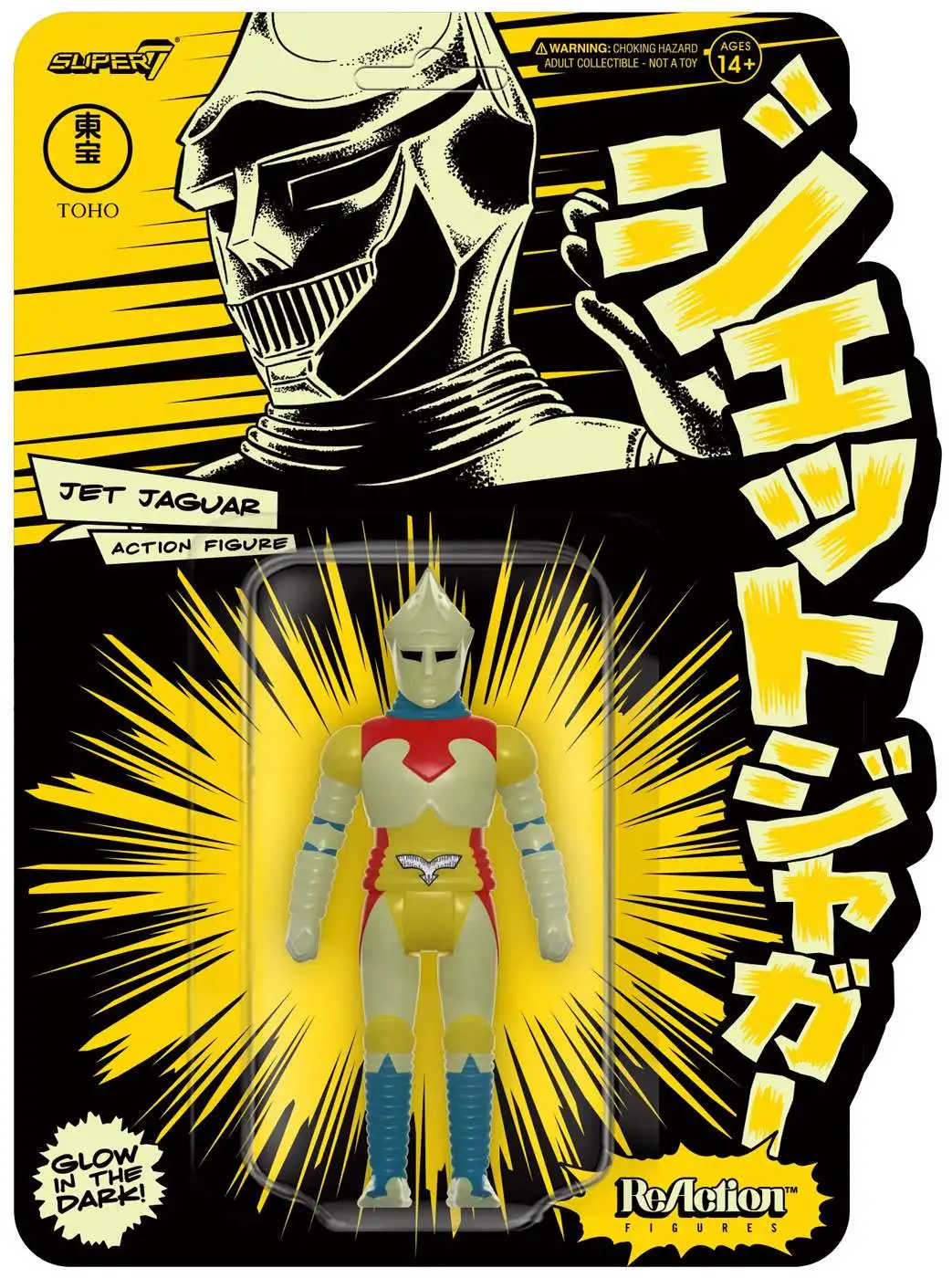 Punch punch punch? More like glow glow glow! Packaged on a special die-cut cardback, youll love adding this glow-in-the-dark 3.75 Jet Jaguar ReAction Figure to your Toho collection- well shake on it!