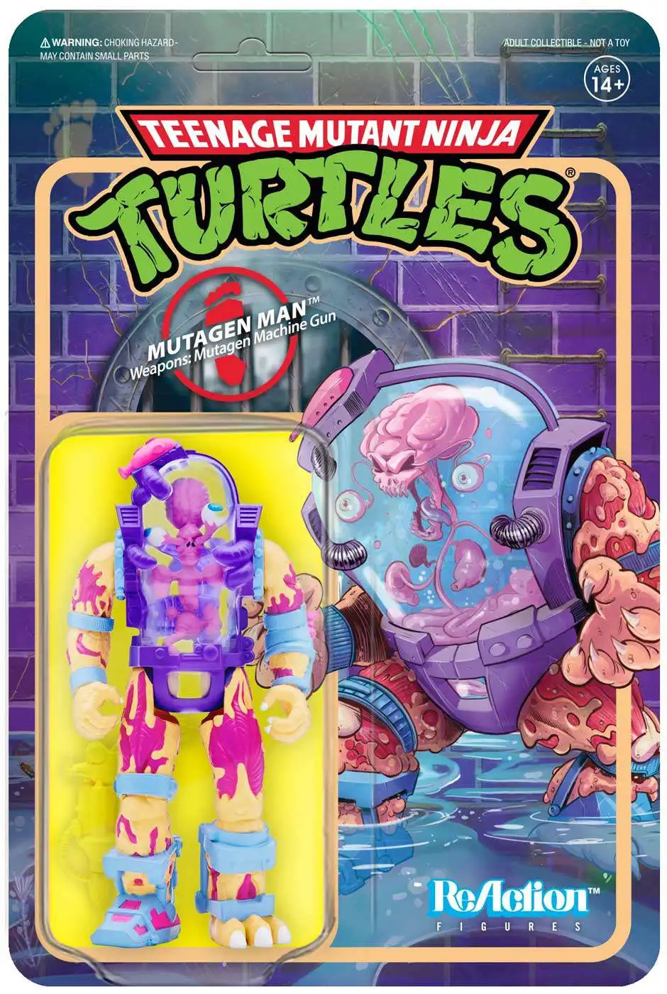 There are outfits that leave little to the imagination, and then theres Mutagen Man. Comprised of a clear containment vessel holding his internal organs attached to mutated arms and legs, it is a strong warning as to the hazards of Mutagen exposure. This 3.75 articulated Mutagen Man ReAction figure highlights his horribly transformed state and includes a Mutagen Machine Gun accessory. Hed love nothing more than to be able to transform back to his ordinary human form, but until science cracks that nut, we strongly suggest you add the Mutagen Man ReAction figure to your TMNT collection.