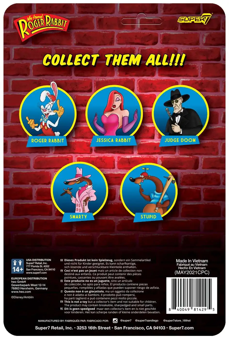 This 3.75 articulated Roger Rabbit ReAction figure brings back Stupid Weasel in all of his tooney glory. He features 5 points of articulation and is packed on retro blister card packaging.