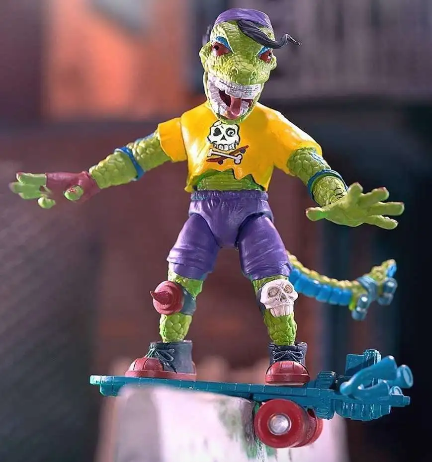 “Mondo Gecko’s the name, and stealing’s my game.” The mutant cousin of the Turtles is now available in Ultimates!! form. Mondo comes dressed in his 80s flair, with a huge collection of accessories including alternate head, alternate hands, and a turbo-charged sewer skateboard. This 7″ highly-articulated action figure is made-to-order and limited edition. Another perfect addition to your Teenage Mutant Ninja Turtles collection.