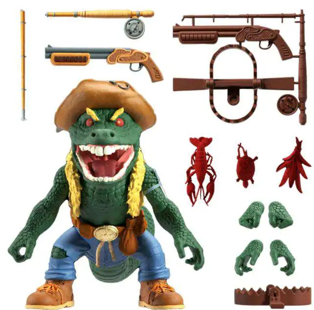 When they were handing out Southern charm and hospitality, Leatherhead must have been out in the swamp, because this gator wants nothing more than getting revenge on the Ninja Turtles! This made-to-order 7 fully articulated Leatherhead ULTIMATES! figure comes with alternate hands, his Jumbo Gumbo Belt, and a weapon rack with his fly fishing rod, Turtle Trap, and Swamp Gun. We guarantee you want to snap up the Swamp-stompin, Ragin Cajun Gator for your TMNT ULTIMATES! collection!