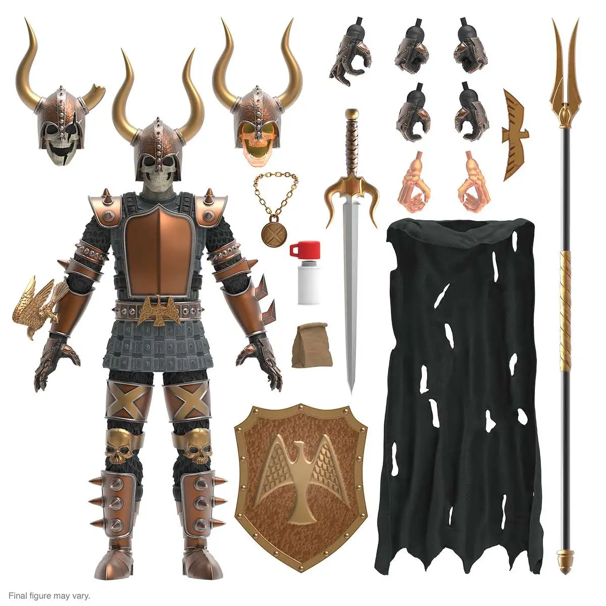 Abandon Hope! Black Falcon, the Undead Warlord of Doom, rides this way, inflicting immortal agony on all in his path! The frightful fiend feels no pain and knows no remorse, driven only to eternal battle and craving only the slow death rattle of his sworn enemy – everyone! Black Falcon, the Undead Warlord of Doom, joins the ULTIMATES! World with this made-to-order 7″ scale fully articulated ULTIMATES! Figure. The Worst is Super7’s own gang of the most villainous vile vermin, and Black Falcon is one of… The Worst! Black Falcon returns to defile the world of the living with multiple interchangeable heads & hands and a variety of accessories.