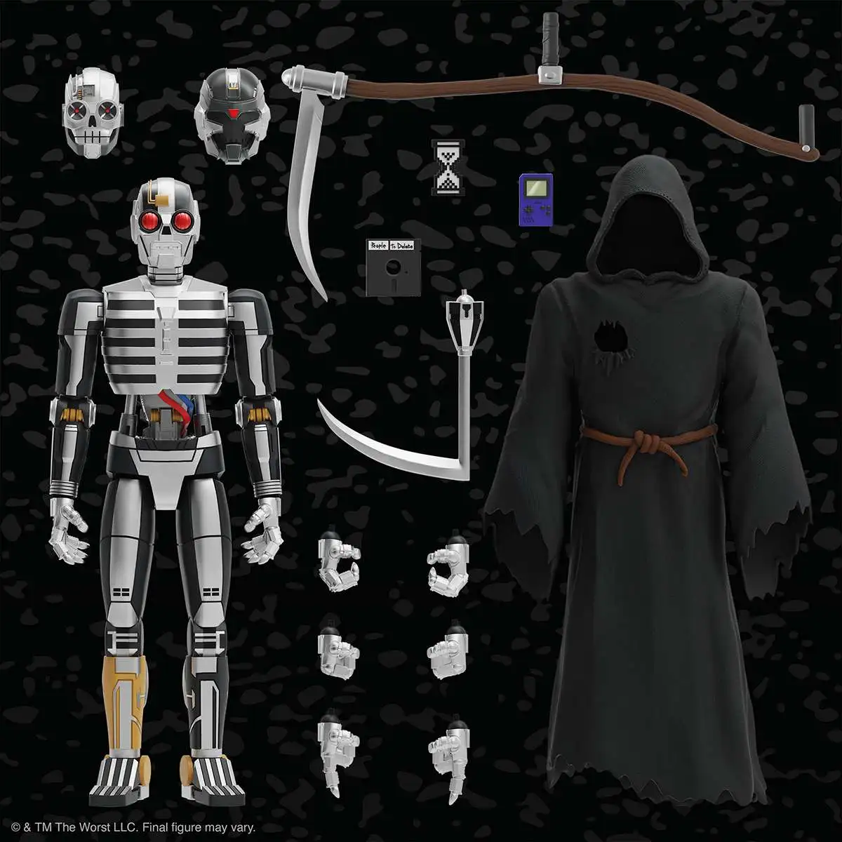 System Warning – Robot Reaper, the Robotic Harbinger of Death, has been detected! This eerie electronic emissary of eternal extermination is hardwired for horror and programmed for pain! A cold, calculating computer with a corrupted file, it cuts and pastes from the living column to the dead, mercy does not compute! Robot Reaper joins the ULTIMATES! World with this made-to-order 7″ scale fully articulated ULTIMATES! Figure. The Worst is Super7’s own gang of the most villainous vile vermin, and Robot Reaper is one of… The Worst! He is here to delete all those whose time has come with multiple interchangeable heads & hands and a variety of accessories.